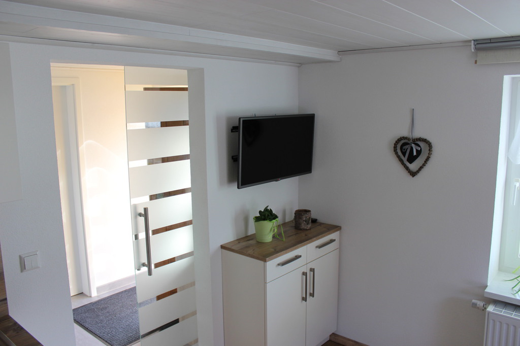 Die Ferienwohnung für 2-3 Personen (42 qm) ist komplett ausgestattet mit einer Wohn/Essküche mit Schlafcouch, Schlafzimmer und Bad mit Dusche, Sat-TV. Bettwäsche, Handtücher und Geschirrtücher stehen für Sie bereit. Kleiner Hund erlaubt auf Anfrage.
